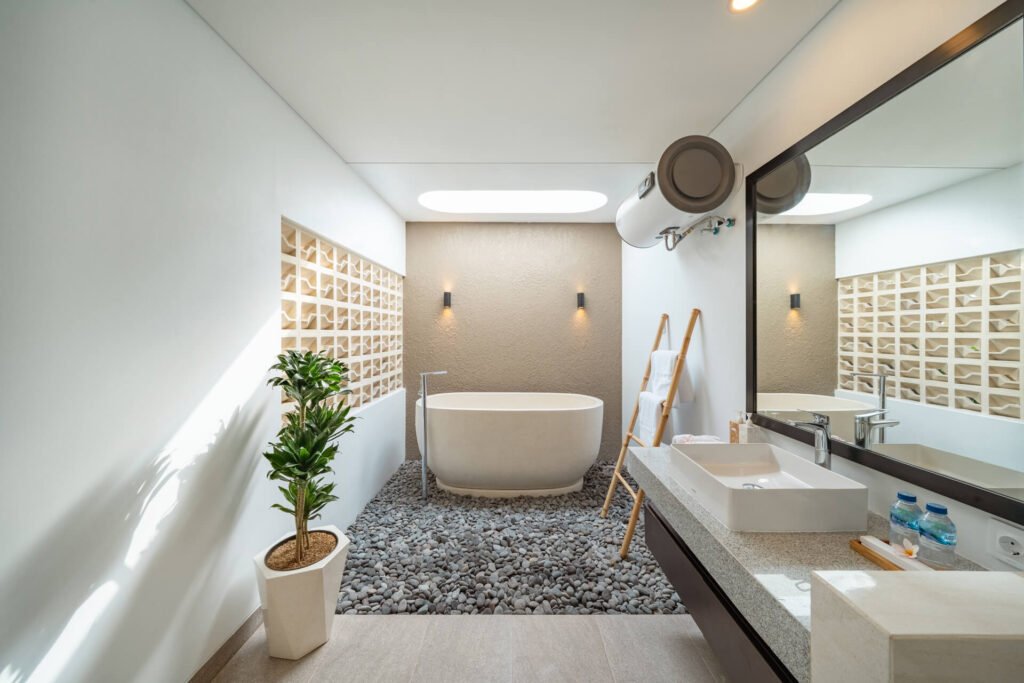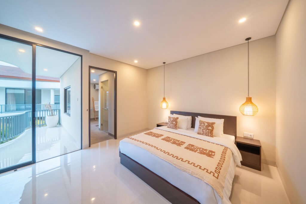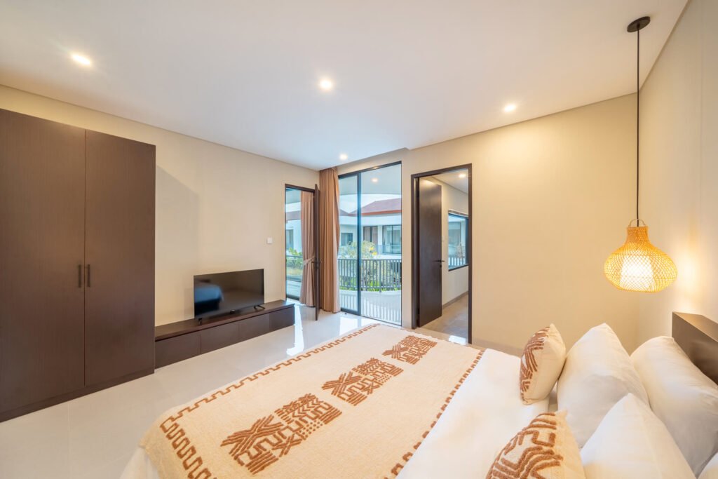Each villa features three spacious bedrooms and four bathrooms, making it ideal for families or groups traveling together. The heart of the villa is the open-plan living room, filled with natural light and tropical air, where guests can gather, share meals, or simply unwind after a day of exploring.